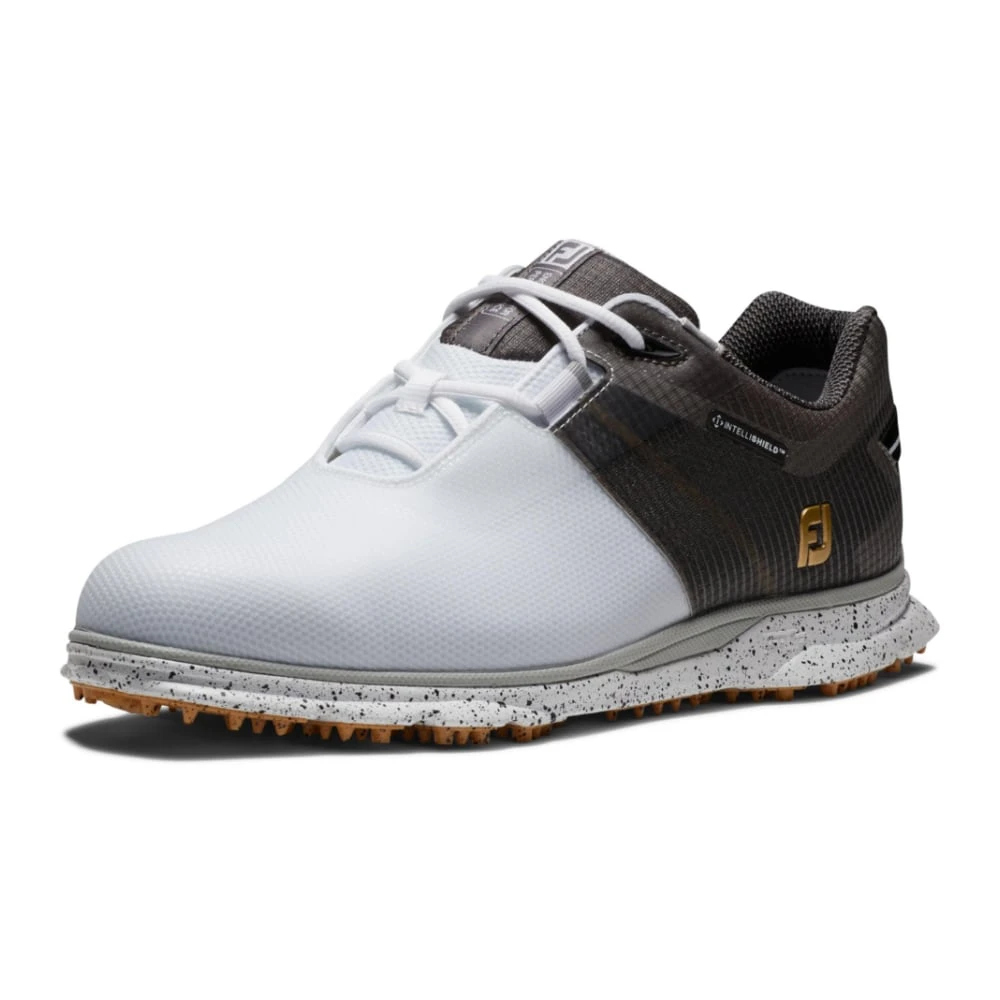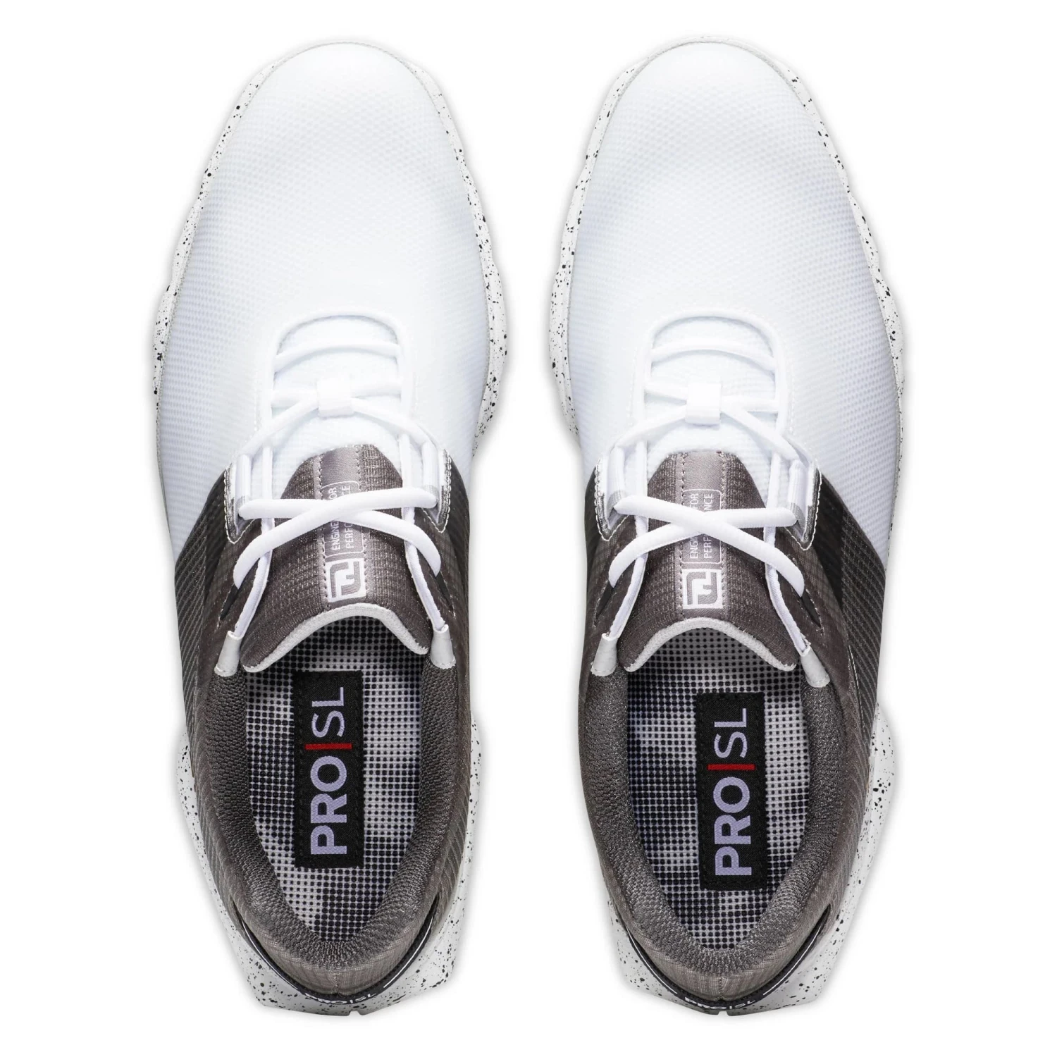 Mens FootJoy Pro SL Sport Golf Shoes. A new addition for 2023; Features a proprietary, dual density Fine Tuned Foam (FTF) outsole that provides traction in all weather conditions on course, yet a comfortable ride off course.