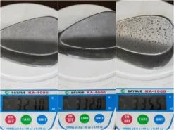 Most wedges come in at about 300g head weights when complete. We ordered these heavy above 25g each which will allow you to put even the craziest of grinds on them. From left to right A, S, L. So you have plenty of room for error or to take metal off these heads.